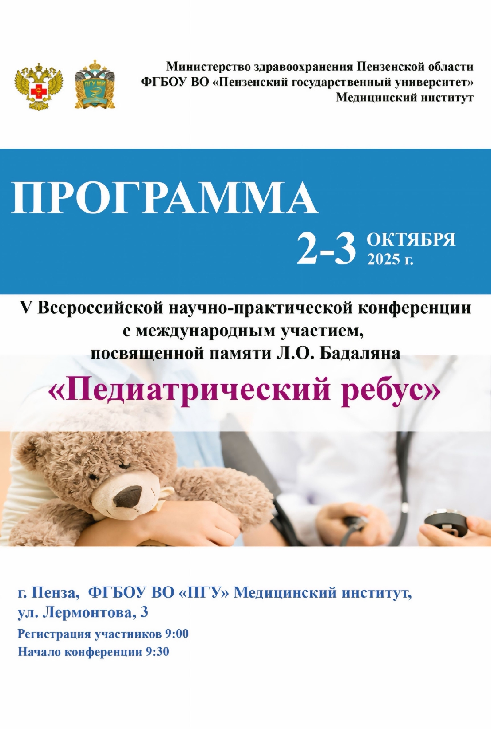 29.09.2025 05:49 | V Всероссийская научно-практическая конференция с международным участием, посвящённая памяти Л.О. Бадаляна - "Педиатрический ребус" |